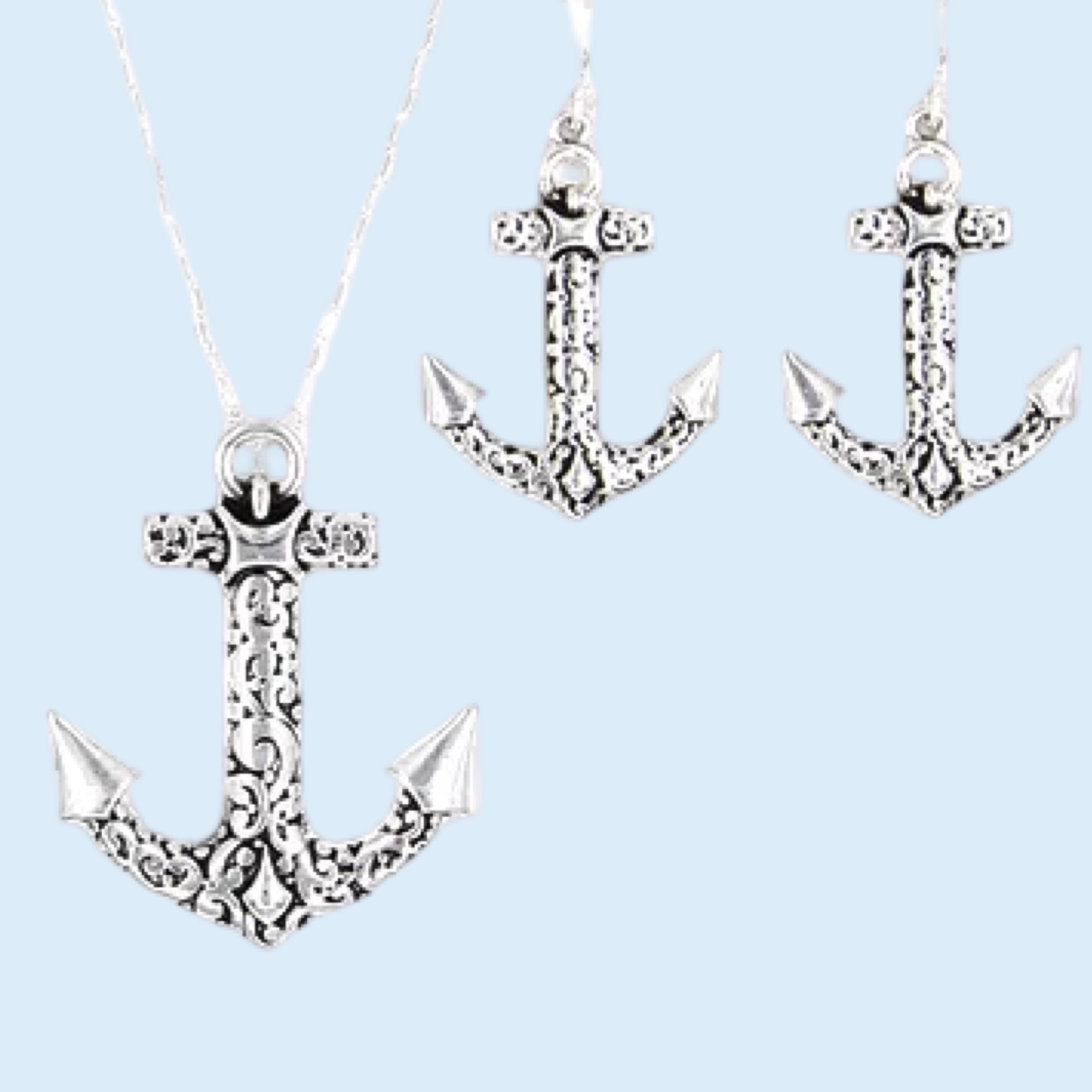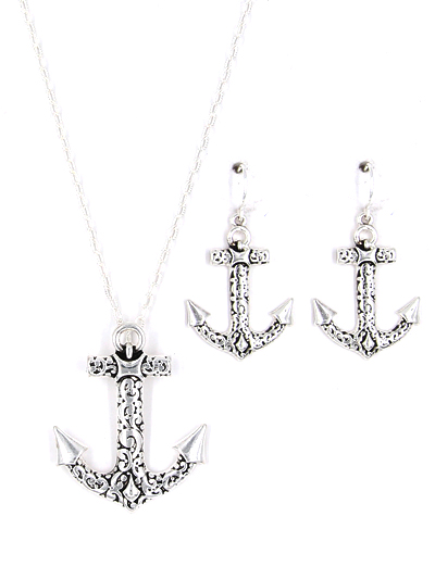 Silver anchor pendant set