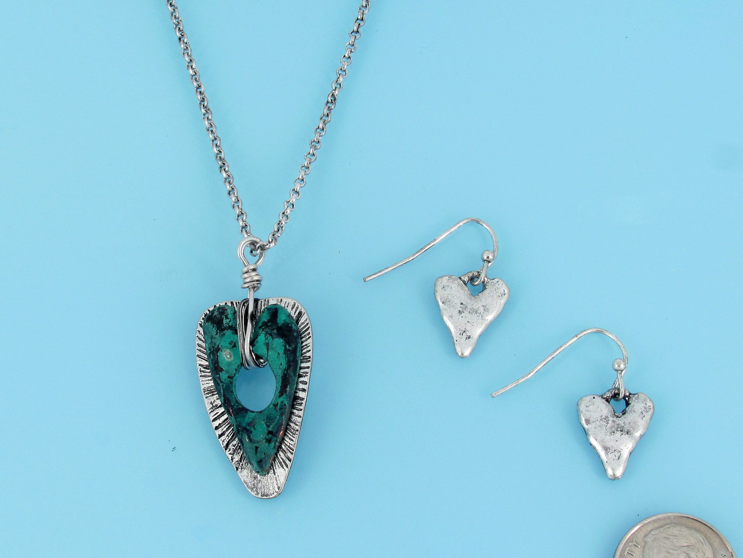 Silver and patina arrow head 18″ necklace with matching silver earrings