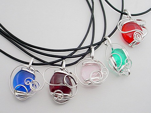 Pendant silver plate with wire wrap glass