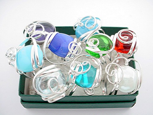Ring silver plate with wrapped curly wire