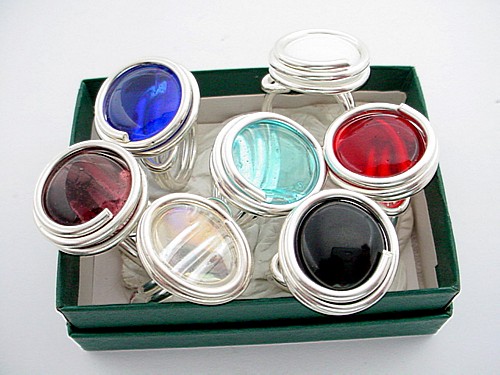 Ring silver plate and glass swirl design